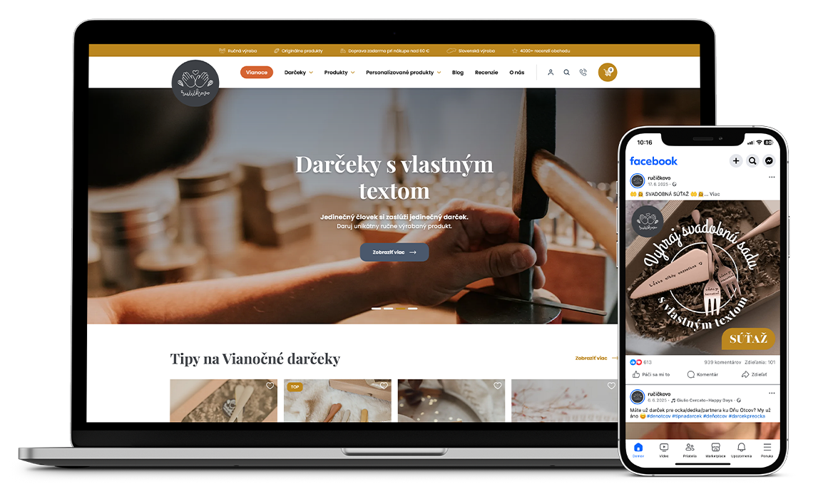 Za značkou Ručičkovo stojí rodina Pastiráková a ich láska k poctivej ručnej výrobe. Našou úlohou bolo preniesť túto autentickú atmosféru do online sveta. Klient potreboval redizajnovať e-shop, ktorý by nebol len predajným kanálom, ale digitálnym ateliérom, kde zákazník cíti hodnotu „handmade“ tvorby. Kľúčovou požiadavkou bolo vytvorenie riešenia na mieru, ktoré by umožnilo predávať nielen hotové produkty, ale aj personalizované podľa predstáv zákazníkov.